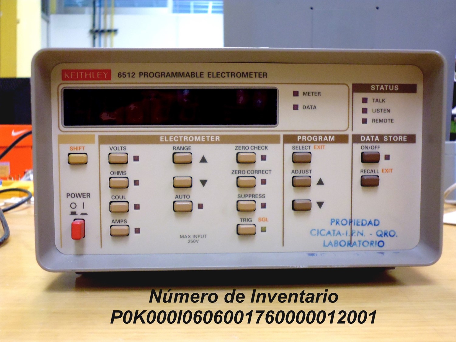 El electrómetro es un electroscopio dotado de una escala. El electrómetro programable Keithley modelo 6512 es uninstrumento altamente sensible diseñado para medir voltaje, corriente, carga y resistencia. El rango de medición de el modelo 6512 está entre 10 µV y 200 V para mediciones de voltaje, desde 0.1fA y 20 mA para mediciones de corriente, entre 0.1Ω y 200GΩ para mediciones de resistencia, y en el rango de 10fC y 20nC en el modo coulomb. |